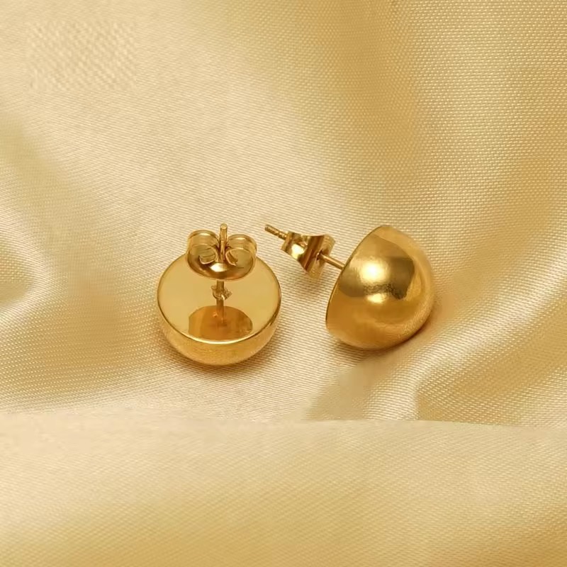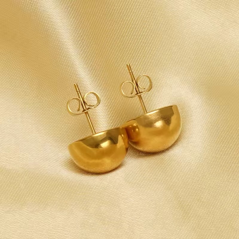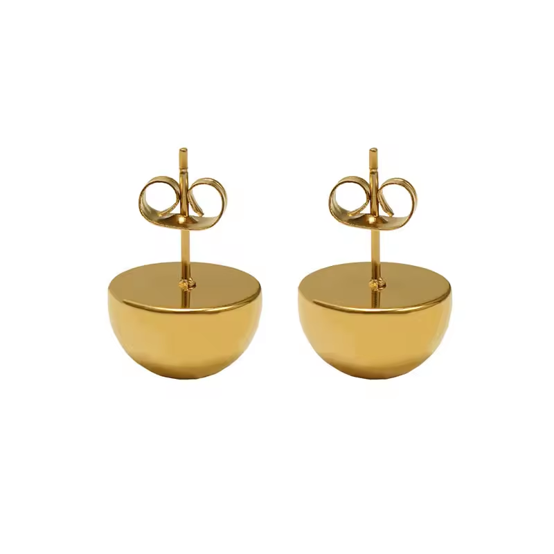 Hemispherical smooth earrings for womenSUS304 Stainless Steel (Titanium Steel)Polish / 18K Gold Plating