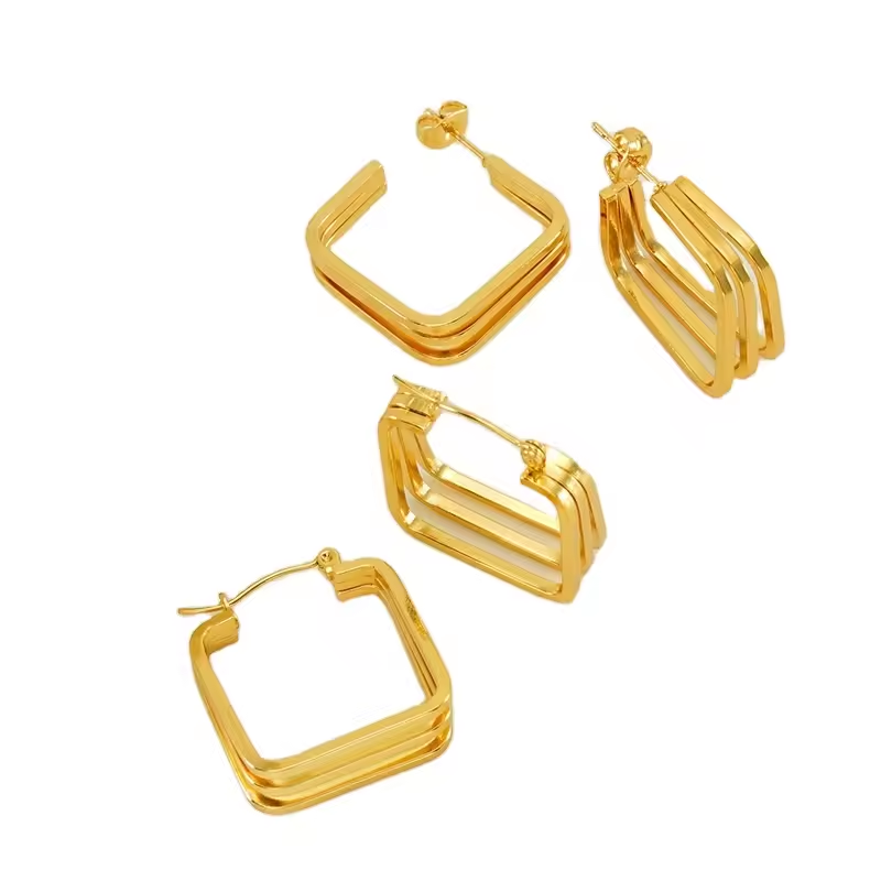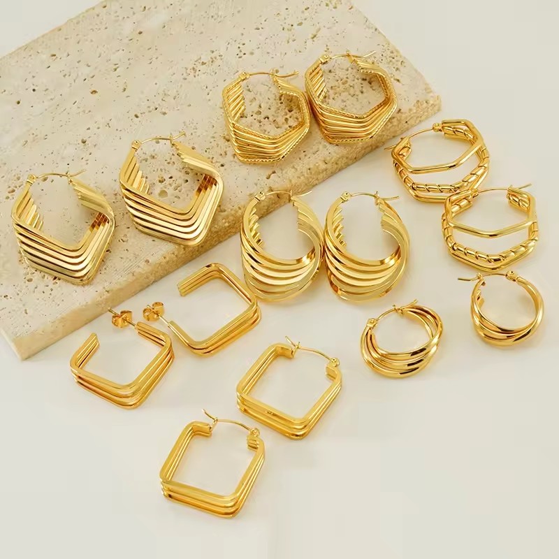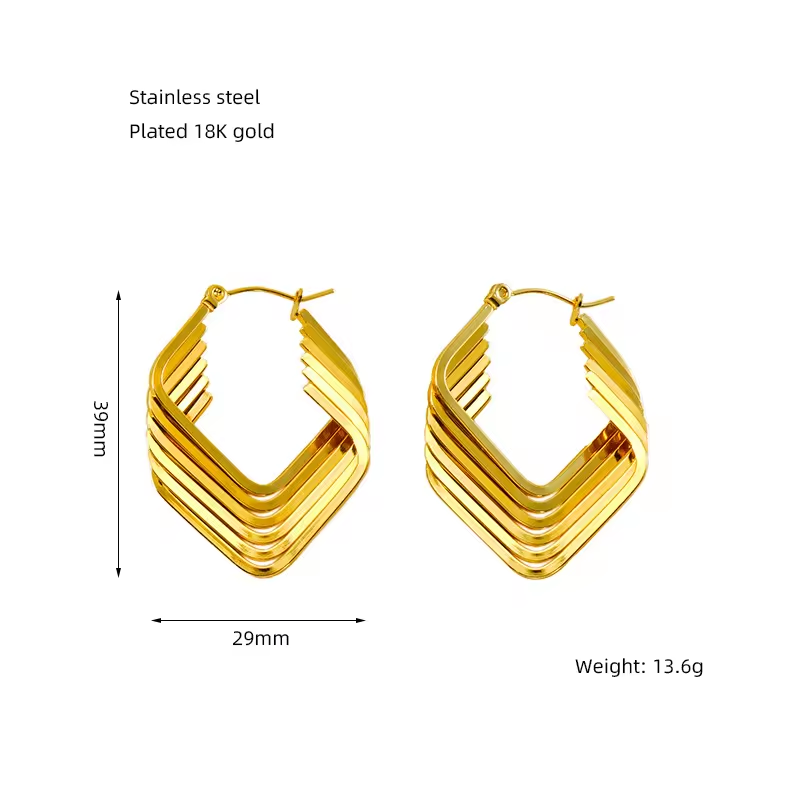 Geometric Retro Stainless Steel earringsSUS304 Stainless Steel (Titanium Steel)Polish / 18K Gold Plating