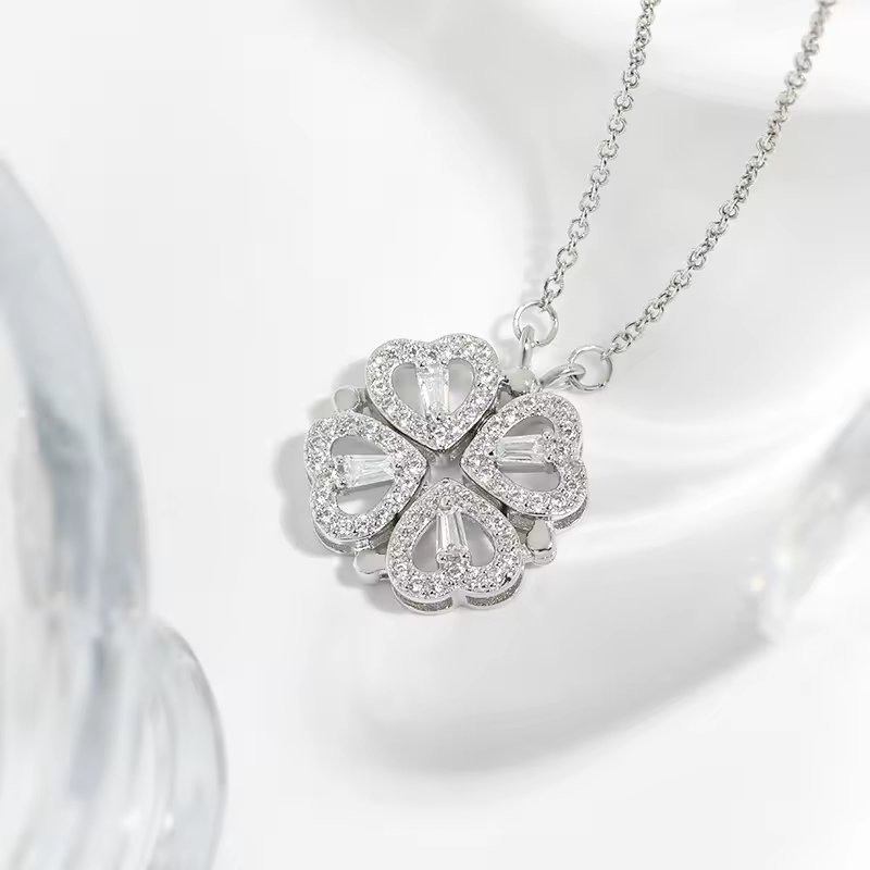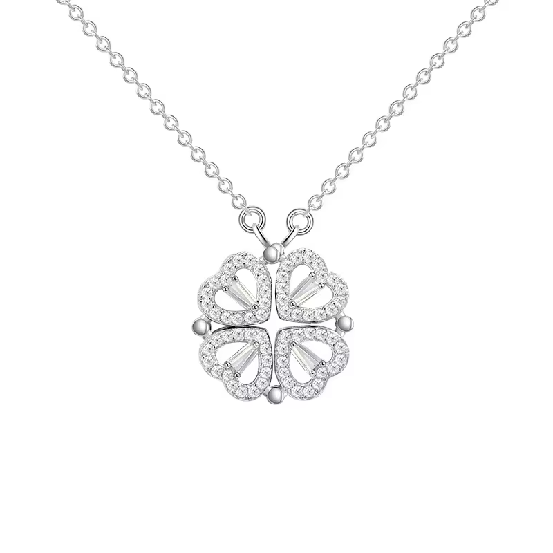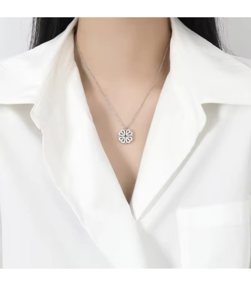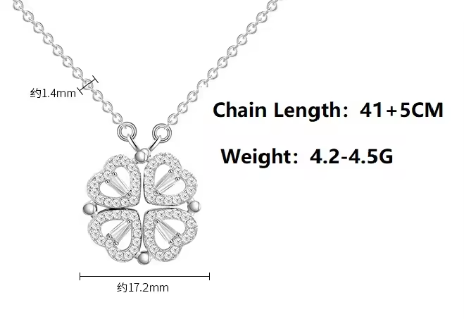 One Style Two-wear Love Heart and Four leaf clover Pendant NecklaceMaterial: Copper