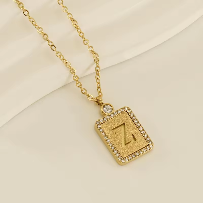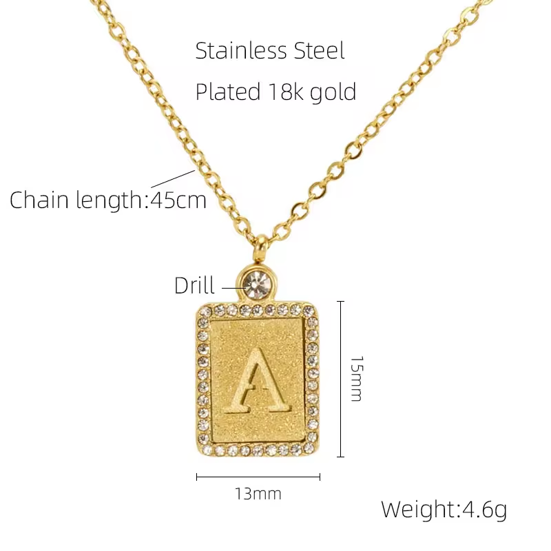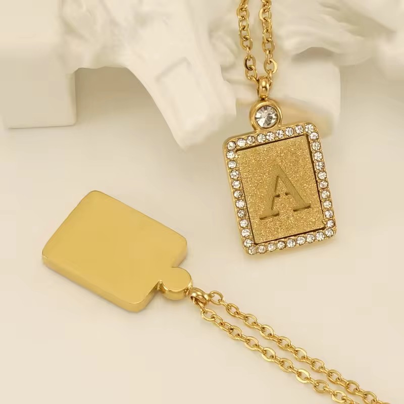High Quality Letter Pendant with Diamond Decoration NecklaceSUS304 Stainless Steel (Titanium Steel)18K Gold Plating