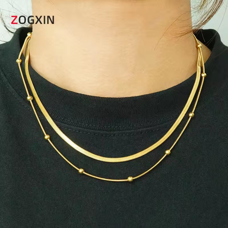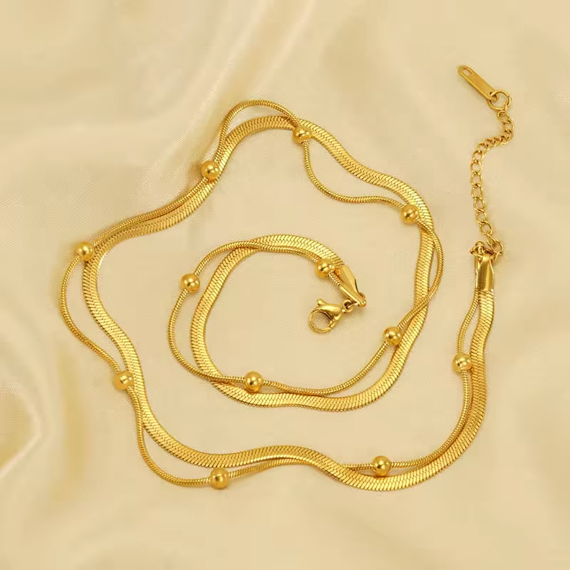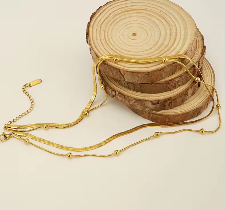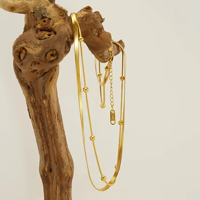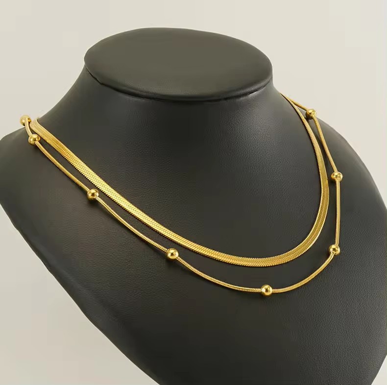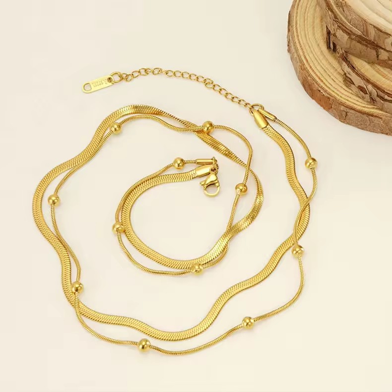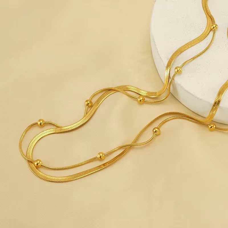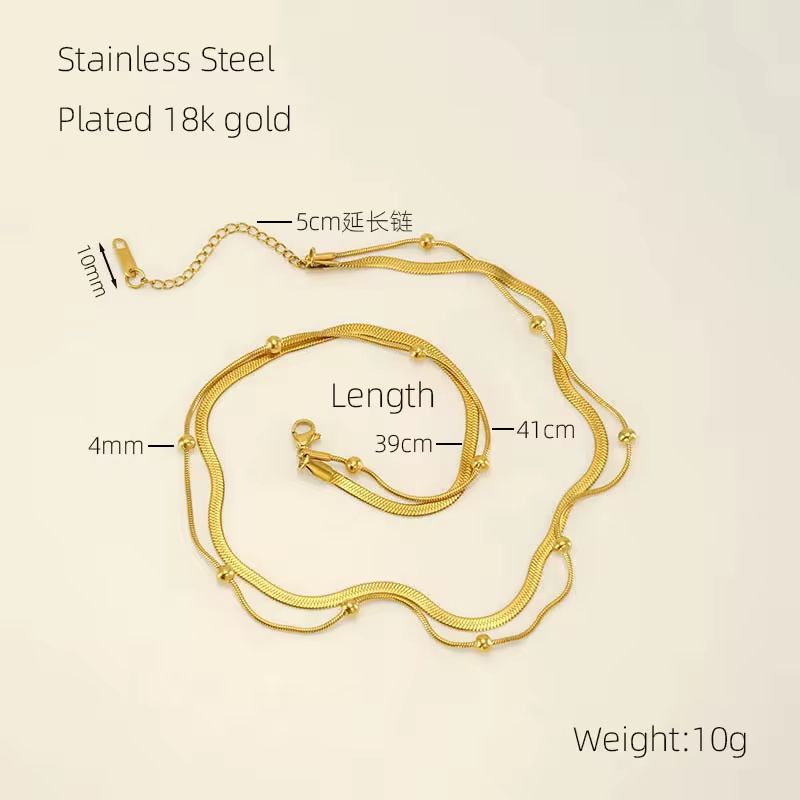 Double Layer Chain NecklaceSUS304 Stainless Steel (Titanium Steel)18K Gold PlatingCharming Chain Letter Necklace