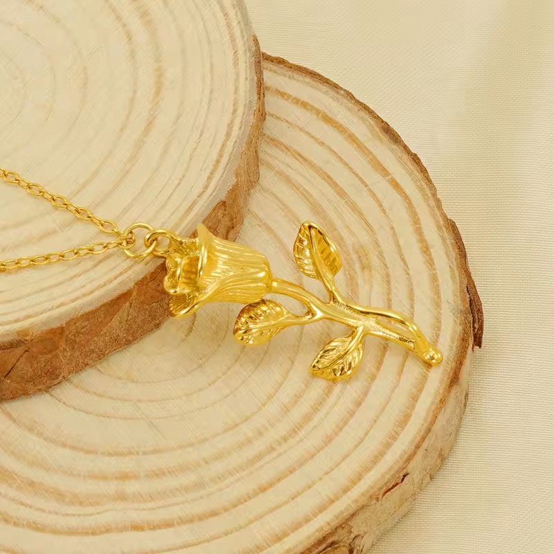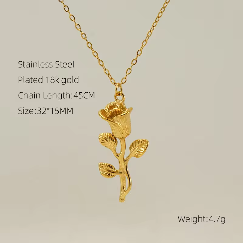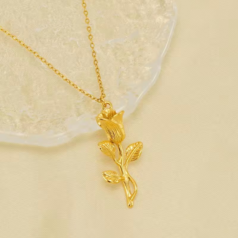 High Quality Rose Pendant NecklaceSUS304 Stainless Steel (Titanium Steel)18K Gold Plating
