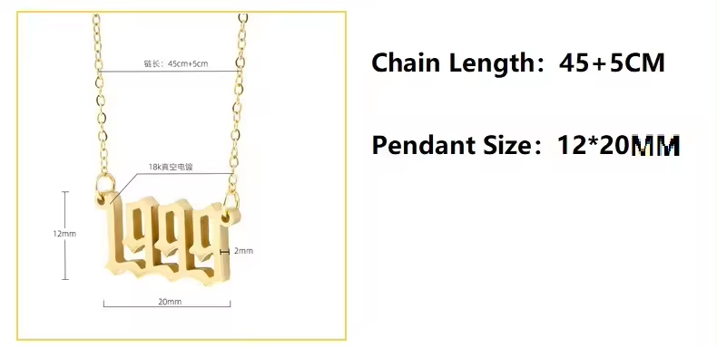 Arabic number stainless steel Pendant NecklaceMaterial:Stainless Steel (Titanium Steel)