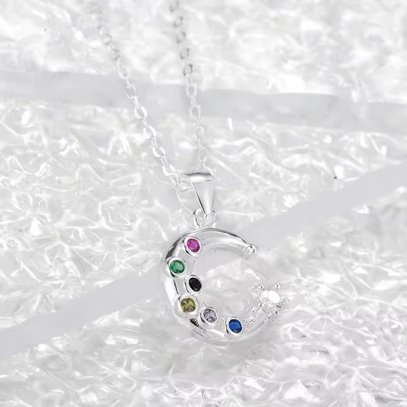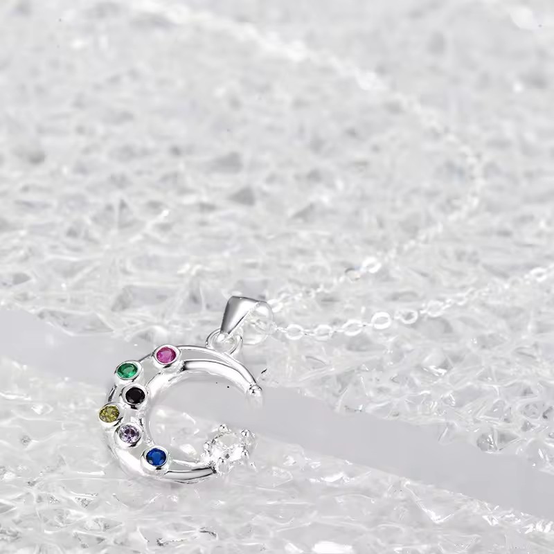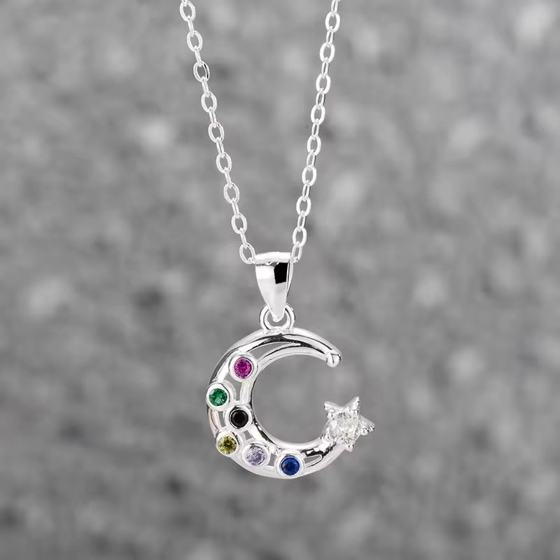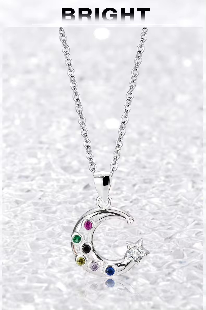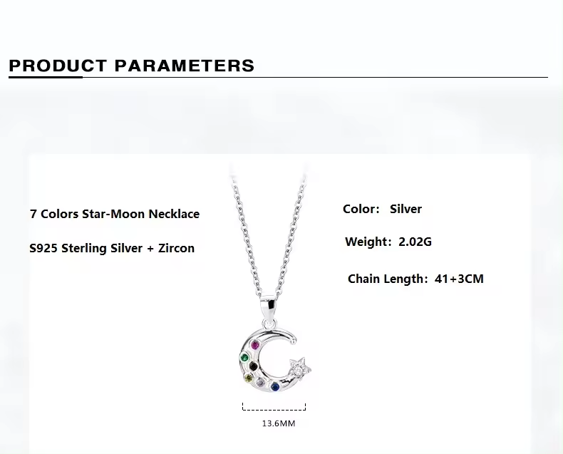 S925 sterling silver 7 colors Star and Moon necklaceMaterial: S925 sterling SilverColor: Original Silver