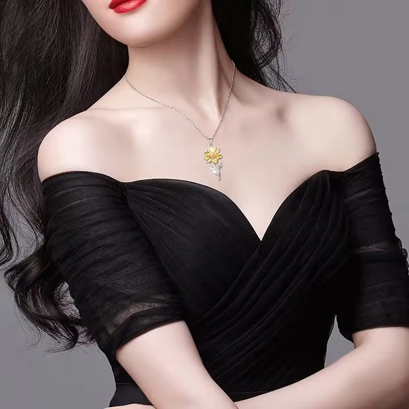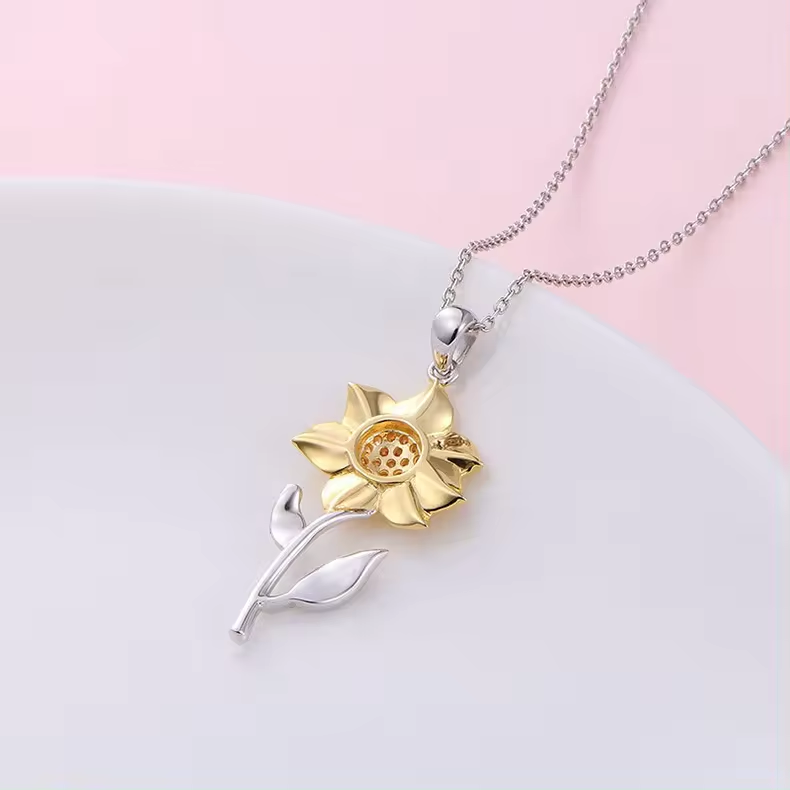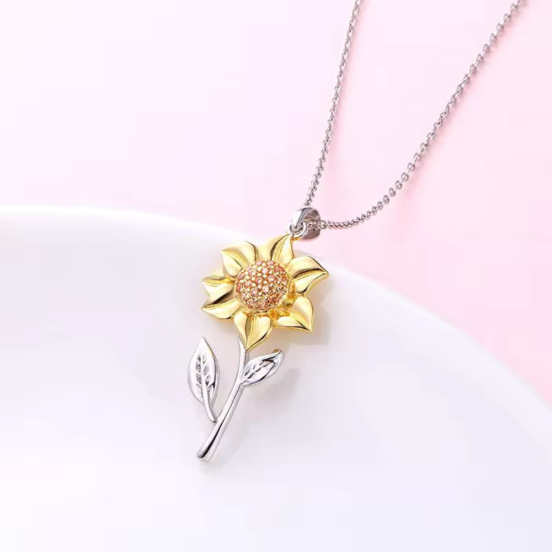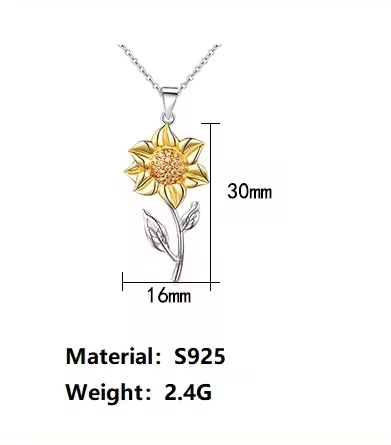 S925 sterling silver Sunflower Pendant necklaceMaterial: S925 sterling SilverColor: Platinum