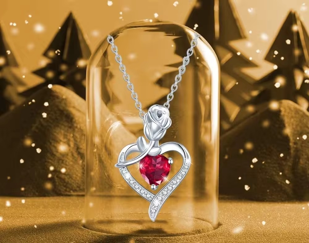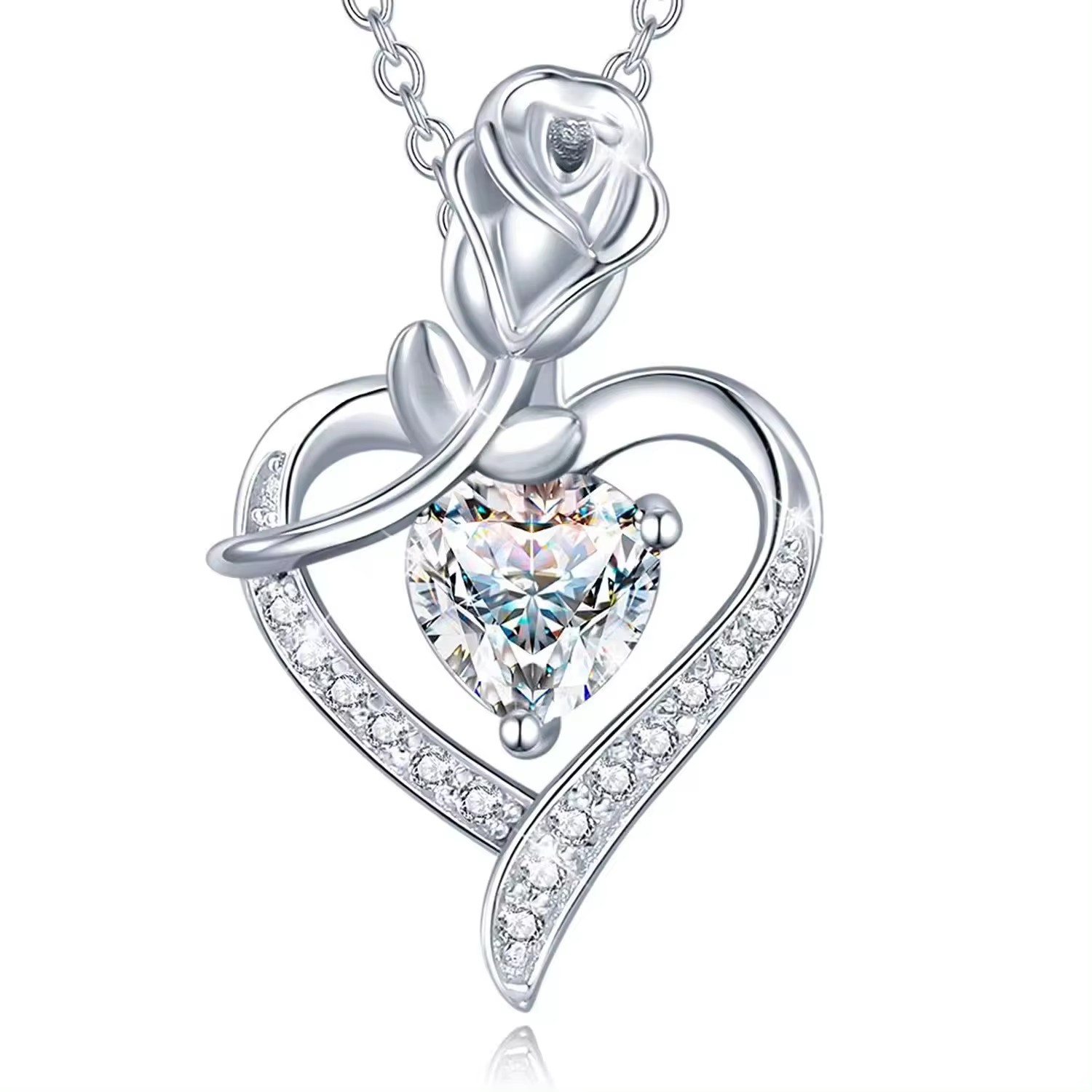S925 sterling silver Heart Rose Diamond NecklaceMaterial: S925 sterling Silver + Diamond + ZironColor: Platinum