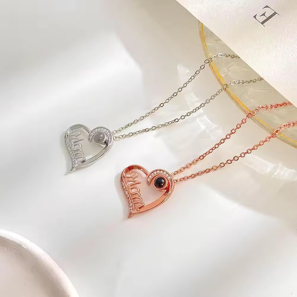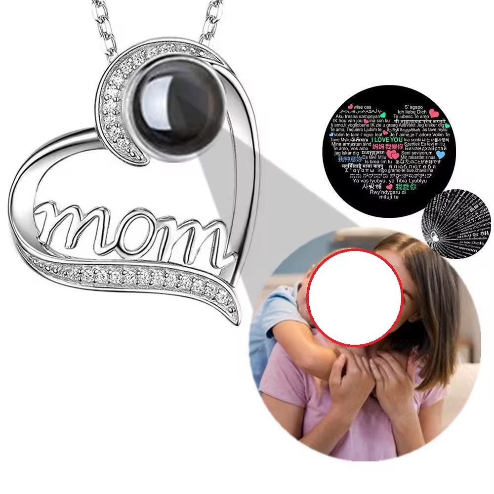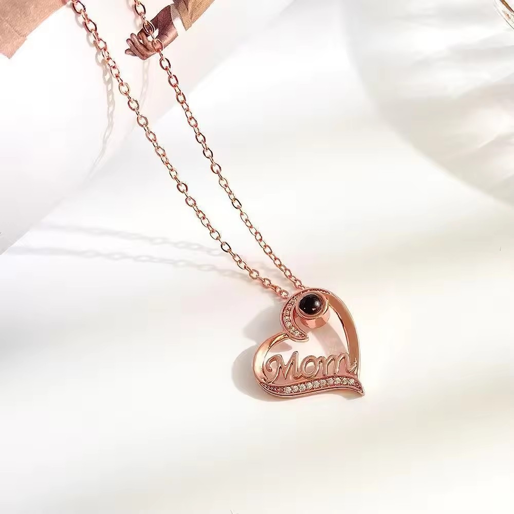 I Love You MOM in 100 Languages Projection NecklacesMaterial: Copper