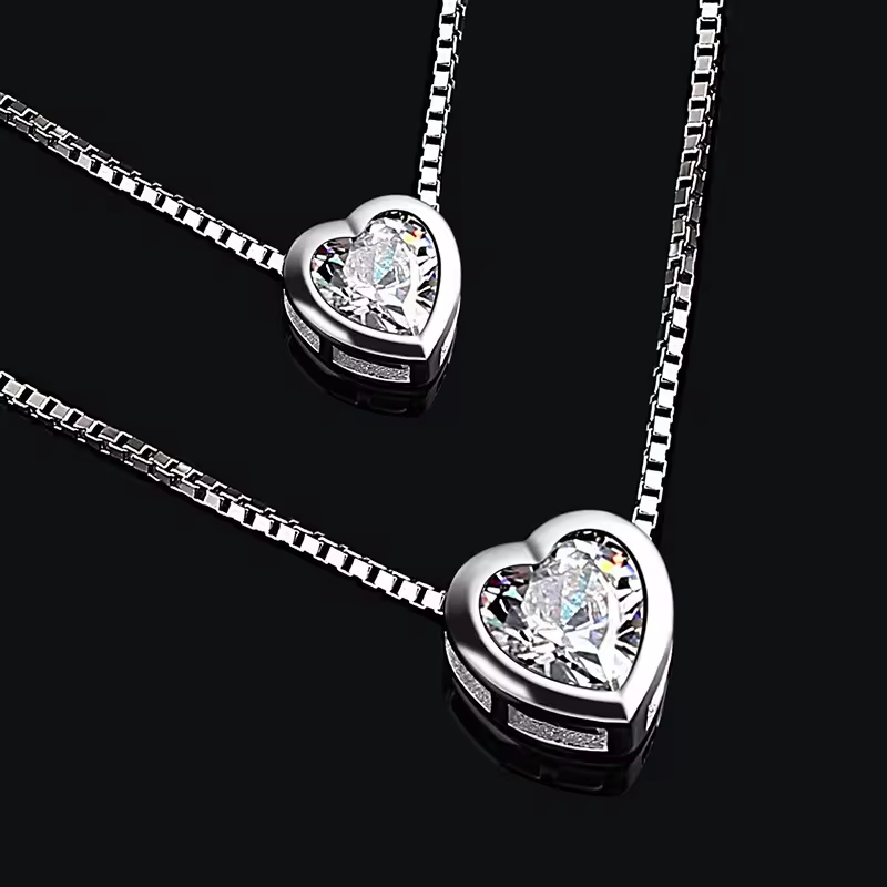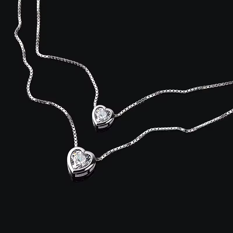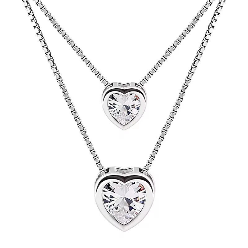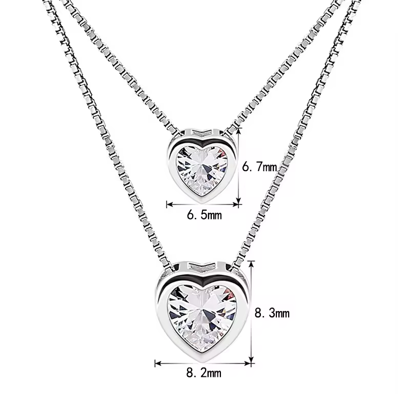 S925 sterling double heart double chain necklace Material: S925 sterling SilverColor: Platinum