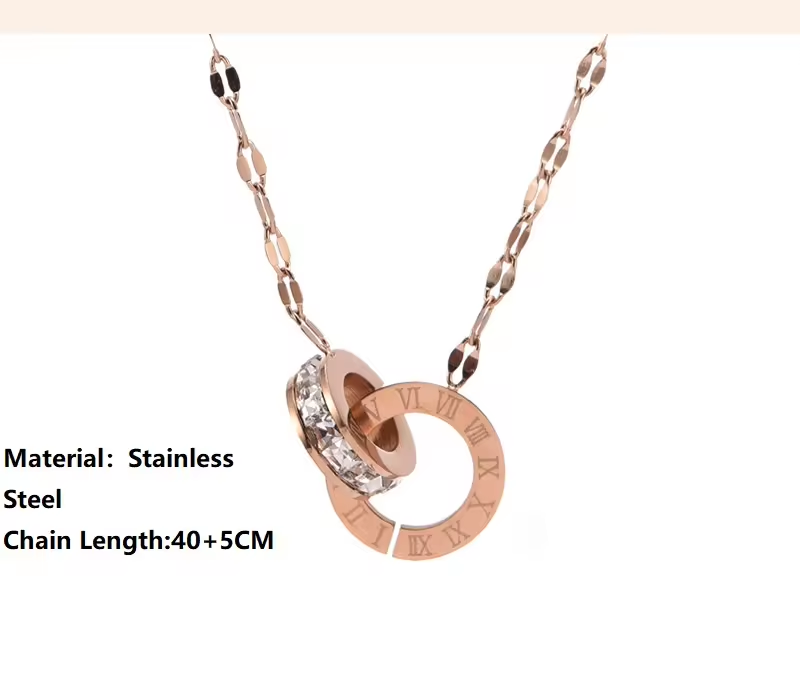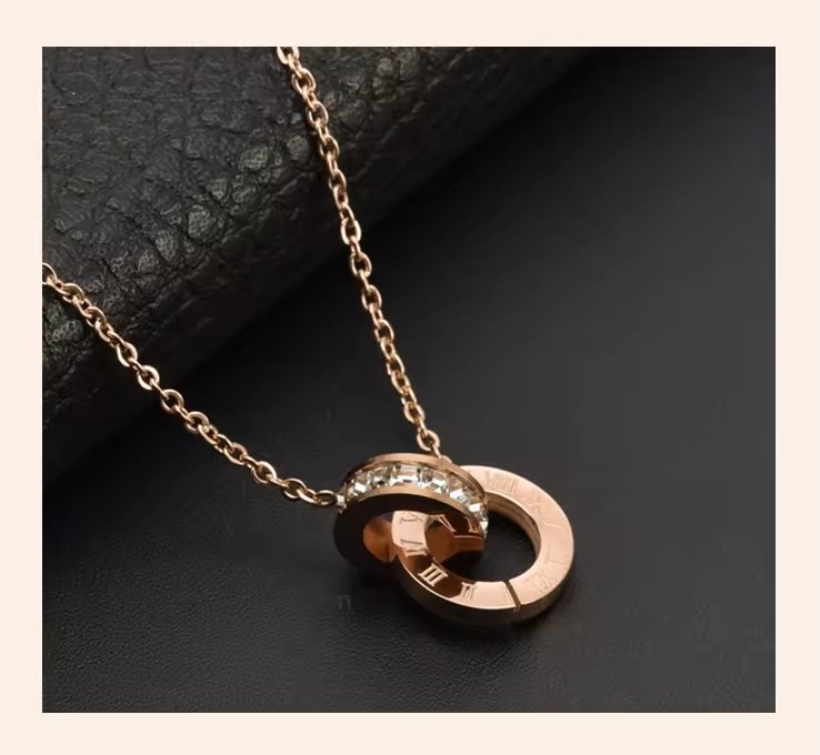 Roman numbers double ring pendant Necklace