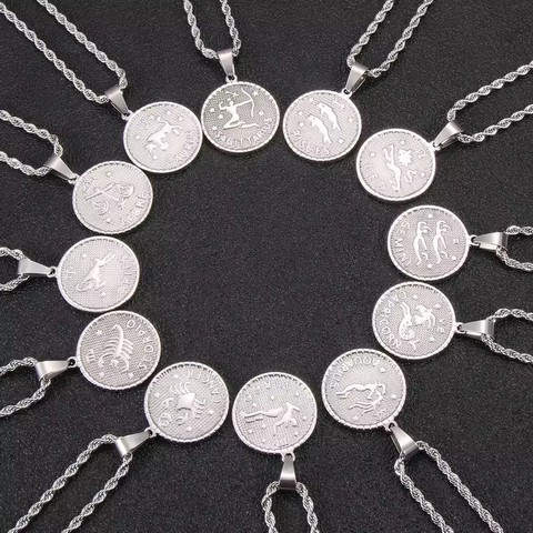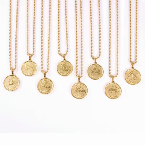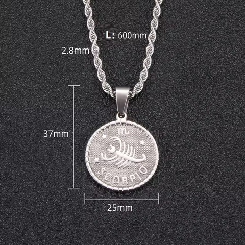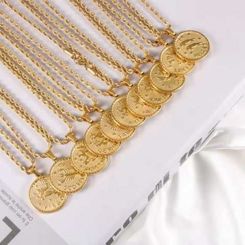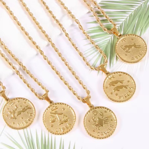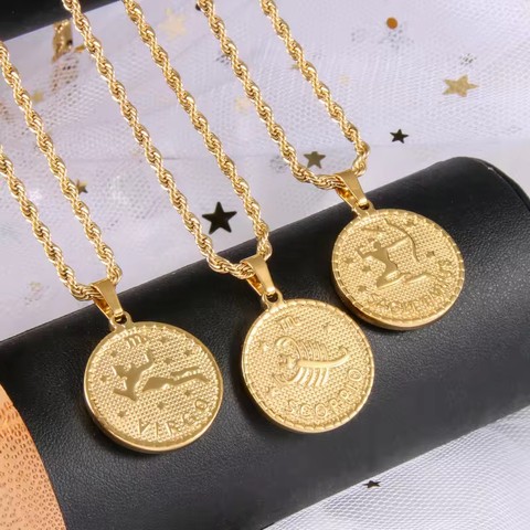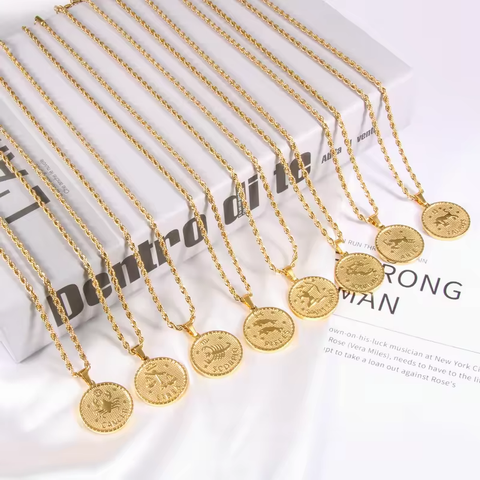 Twelve Constellation 18K gold plated sweater chain necklaceSUS304 Stainless Steel (Titanium Steel)Color: Original Stainless Steel / 18K Gold Plated