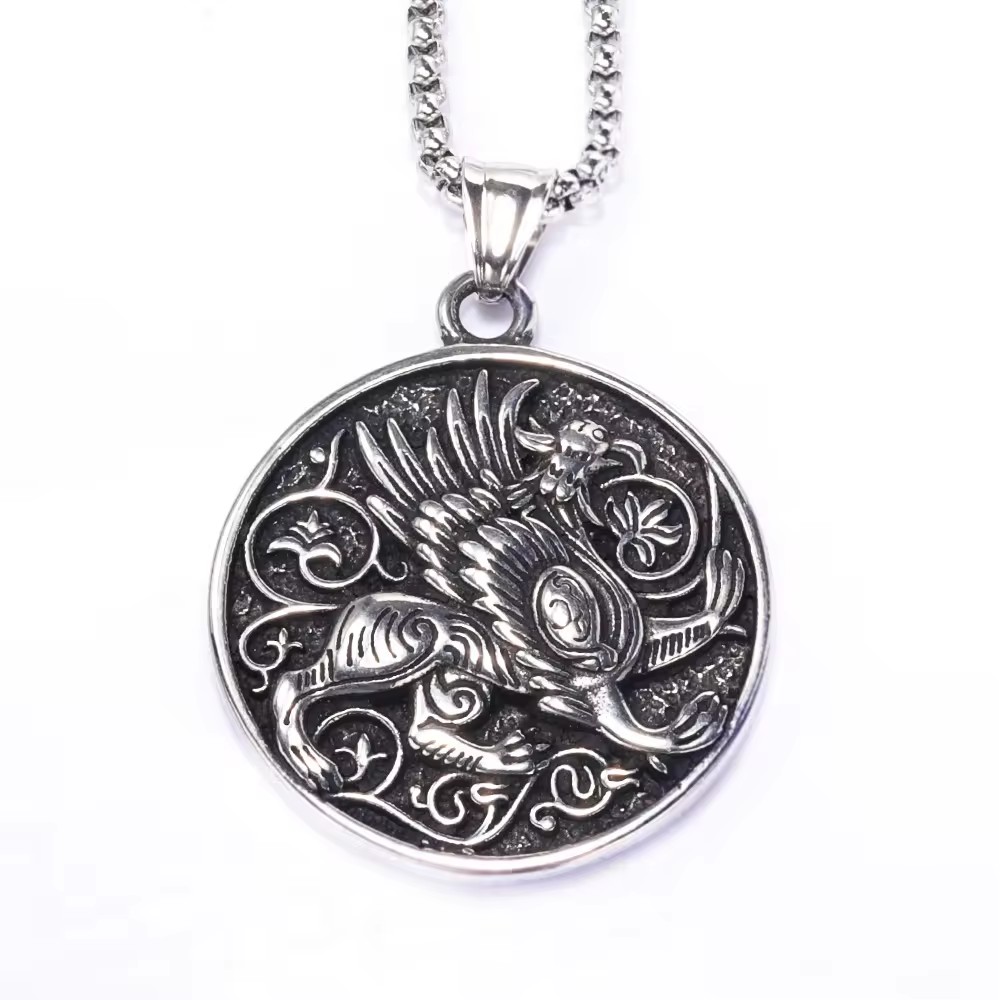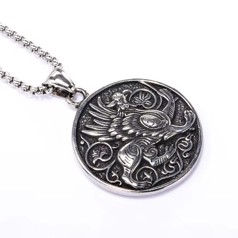 Greek mythology Griffon amulet pendant necklaceSUS304 Stainless Steel (Titanium Steel)Color: Original Stainless Steel with polish